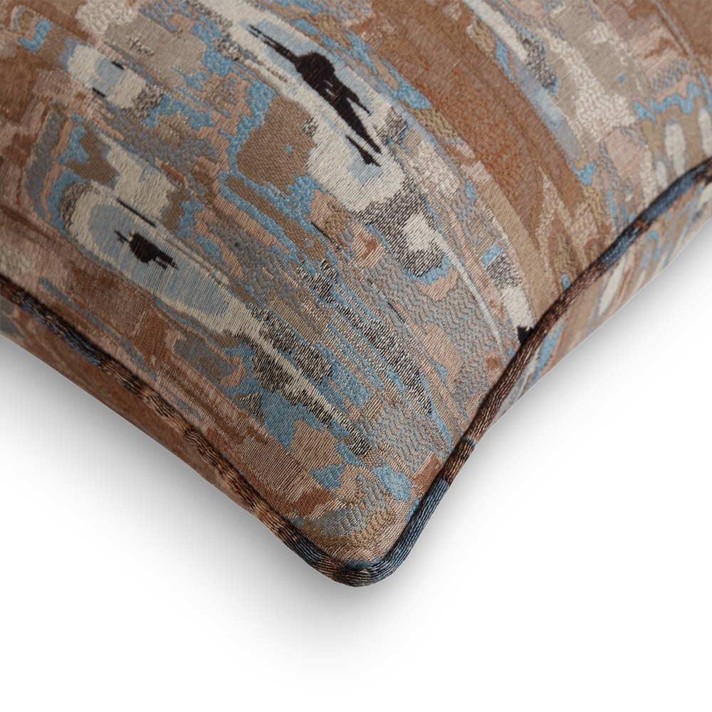 Cascade is a stunning silk, linen and viscose intricate jacquard cushion and crafted from the fabric by the same name. Featuring a complex natural form design and showcasing multi colours, this Cascade cushion has been finished with a piped detail using the reverse side of Cascade and is a delightful indulgent accessory. Handmade with true craftsmanship in the UK, Cascade is aperfect finishing touch on a sofa or bed and will elevate an interior with its effortless elegance. Bespoke sizesand finishes are welcomed.