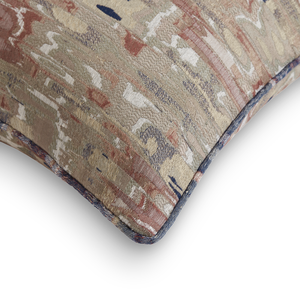 Cascade is a stunning silk, linen and viscose intricate jacquard cushion and crafted from the fabric by the same name. Featuring a complex natural form design and showcasing multi colours, this Cascade cushion has been finished with a piped detail using the reverse side of Cascade and is a delightful indulgent accessory. Handmade with true craftsmanship in the UK, Cascade is aperfect finishing touch on a sofa or bed and will elevate an interior with its effortless elegance. Bespoke sizesand finishes are welcomed.