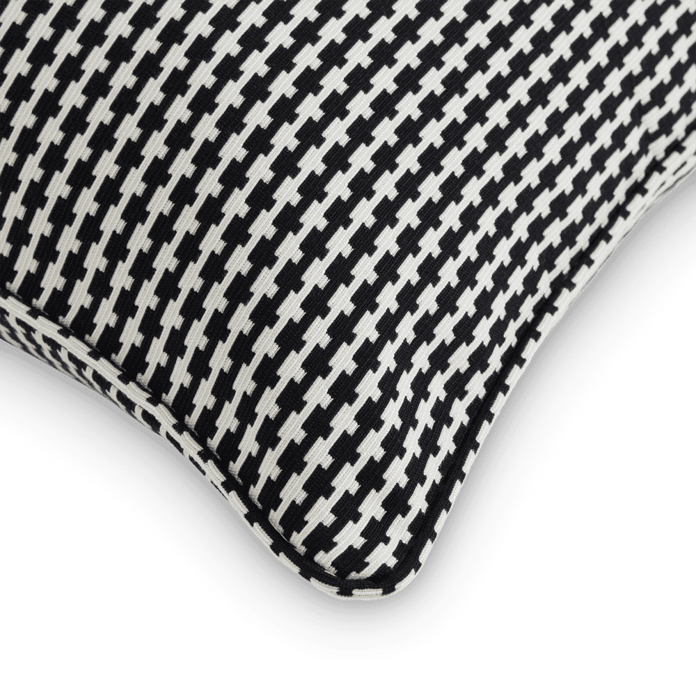 With it's soft hand and blend of matt and polished yarns the fabric Lock works wonderfully for decorative cushions. With a small interlocking geometric design and a wonderful faille type texture, Lock is our modern take of the traditional houndstooth pattern. The Lock cushion with a smart piped edge has a versatile appeal making it perfect for all styles of interior from modern to classic. Bespoke sizes and finishes are welcomed.