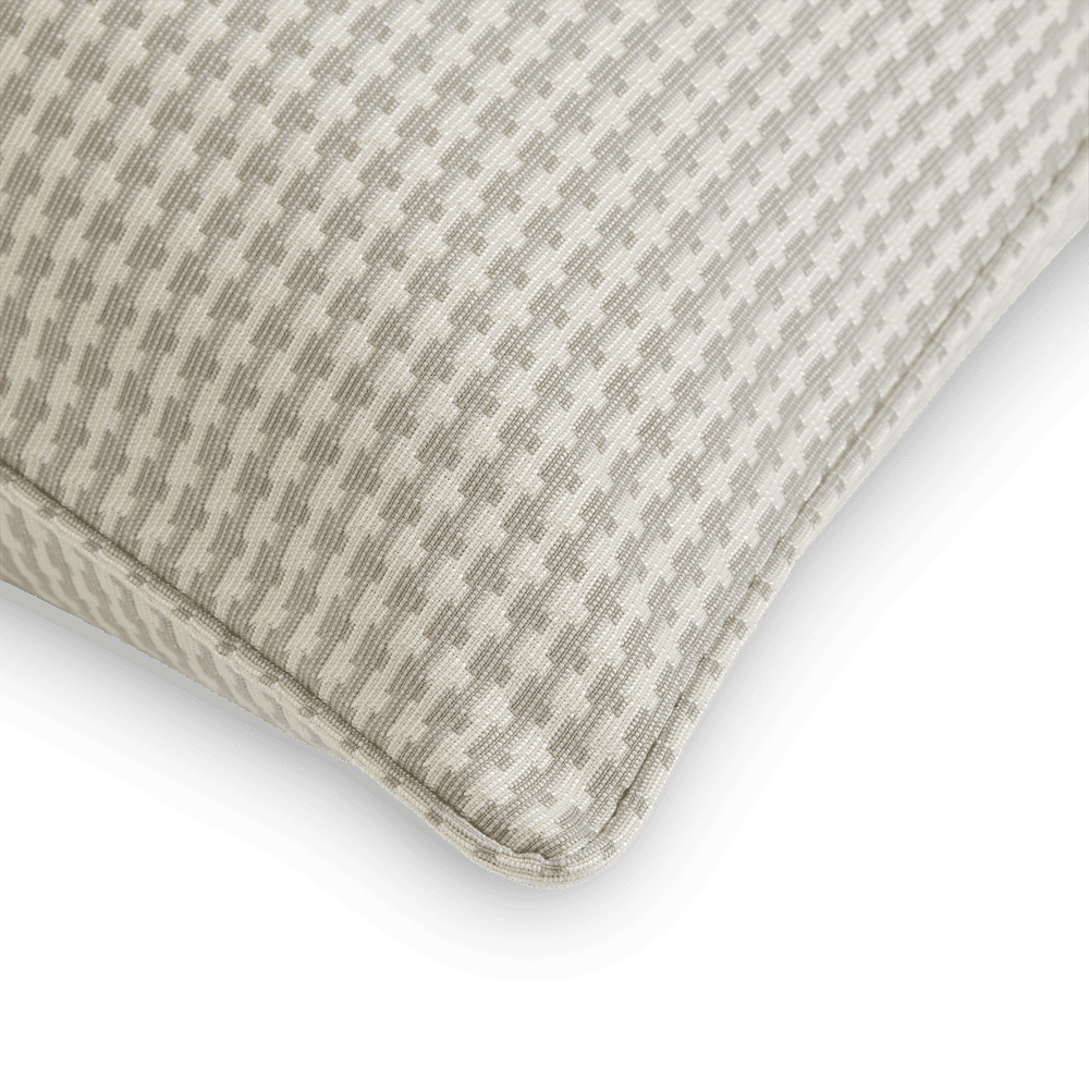 With it's soft hand and blend of matt and polished yarns the fabric Lock works wonderfully for decorative cushions. With a small interlocking geometric design and a wonderful faille type texture, Lock is our modern take of the traditional houndstooth pattern. The Lock cushion with a smart piped edge has a versatile appeal making it perfect for all styles of interior from modern to classic. Bespoke sizes and finishes are welcomed.