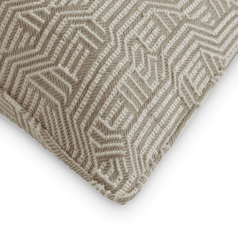 Maze is a deeply textural jacquard fabric woven on a fine cotton warp. The intricate maze like design is both elegant and subtly decorative and makes for truly wonderous cushions. With a soft calm palette of colourways Maze dresses the home with a quiet sophisication and layers perfectly with the cushions and fabric 'Promenade' which offers a beautiful soft floral design with Maze hightlighted within the ground. Bespoke sizes and finishes are welcomed.