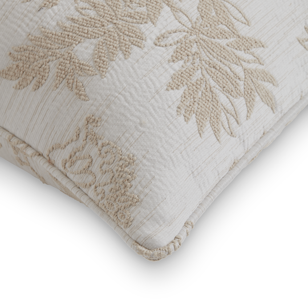 Paradise cushion, crafted from the fabric by the same name, showcases a picturesque jacquard motif woven with a textured boucle on a two-tone cotton ground. This beautiful multi-textured fabric makes for wonderful eye-catching cushion and combined with a smart self piped detail it creates a truly striking style statement. Bespoke sizing and finishes are welcomed.