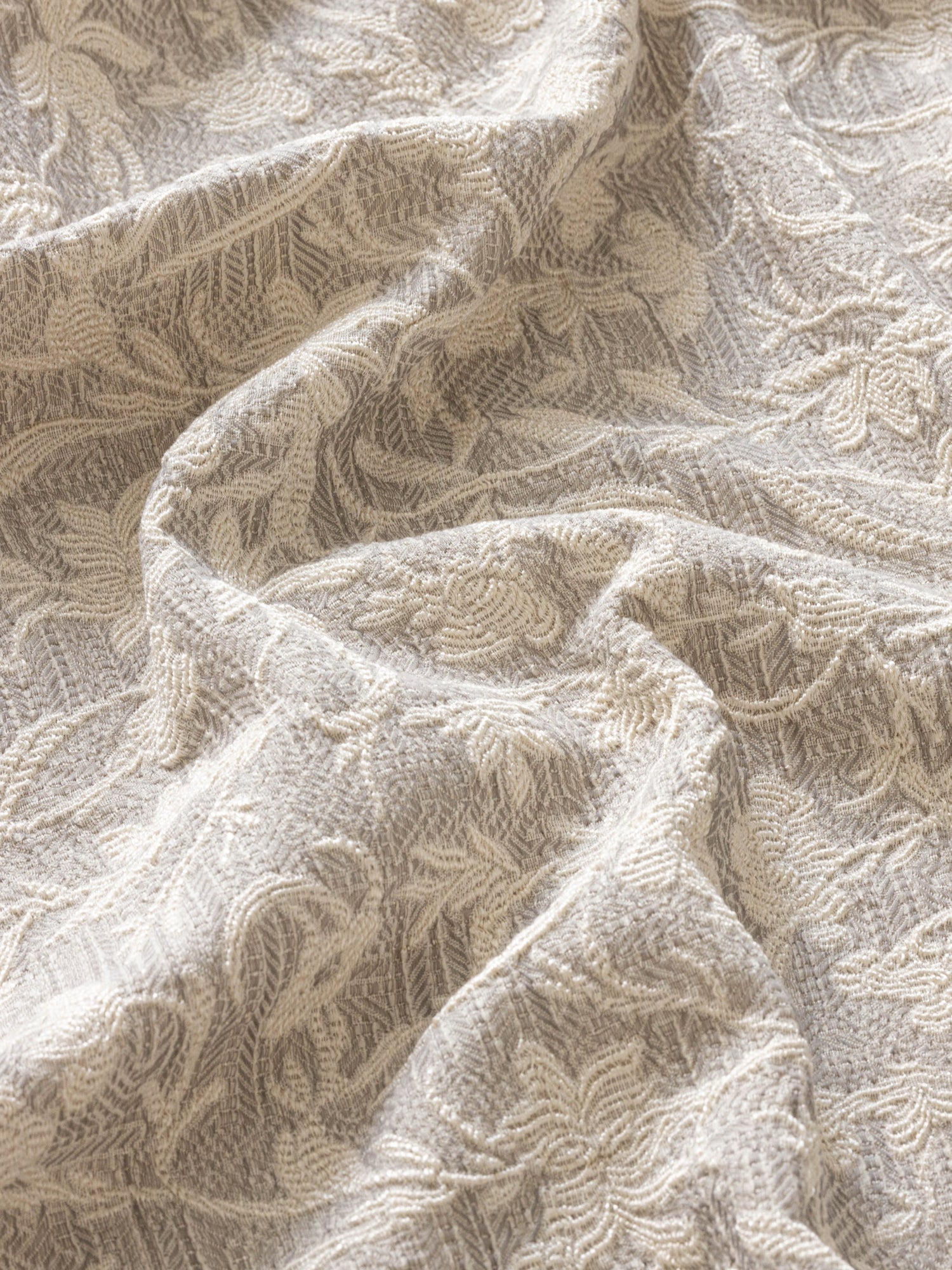Promenade, a double width floral fabric which has much in common with an elegantly carved cameo, and indeed, Promenade's motif was developed from an archival floral drawing. The three subtle shades carry this richly textural jacquard making it an intelligently chic floral. Double width and a co-ordinate of Maze we love the combination of the geometric and floral in the same scheme.Alternative Colours