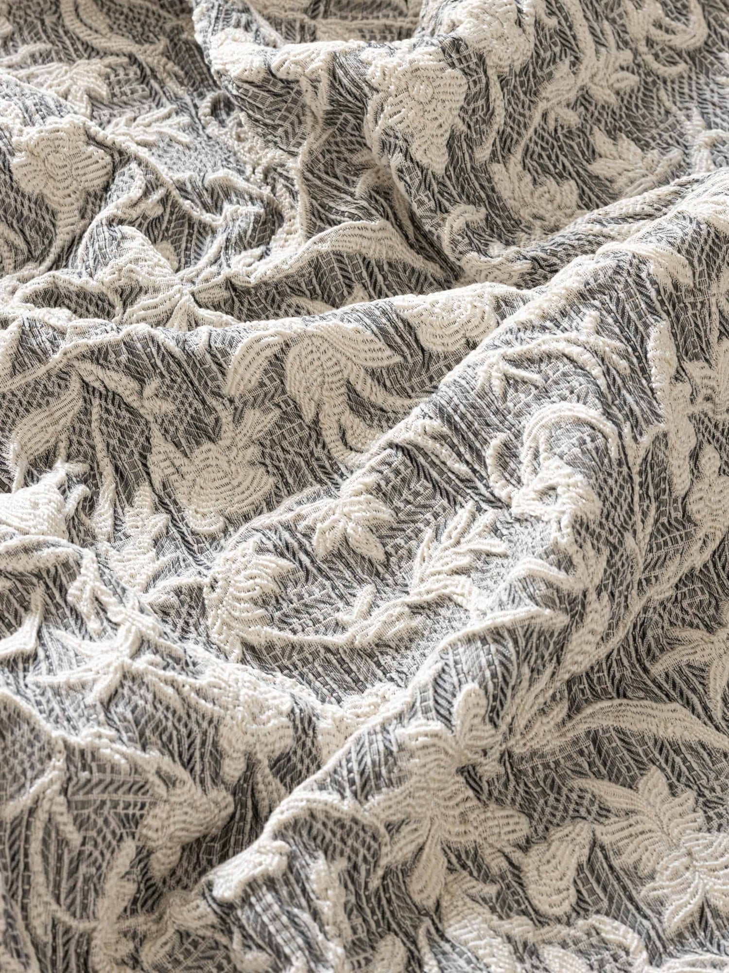 Promenade, a double width floral fabric which has much in common with an elegantly carved cameo, and indeed, Promenade's motif was developed from an archival floral drawing. The three subtle shades carry this richly textural jacquard making it an intelligently chic floral. Double width and a co-ordinate of Maze we love the combination of the geometric and floral in the same scheme.Alternative Colours