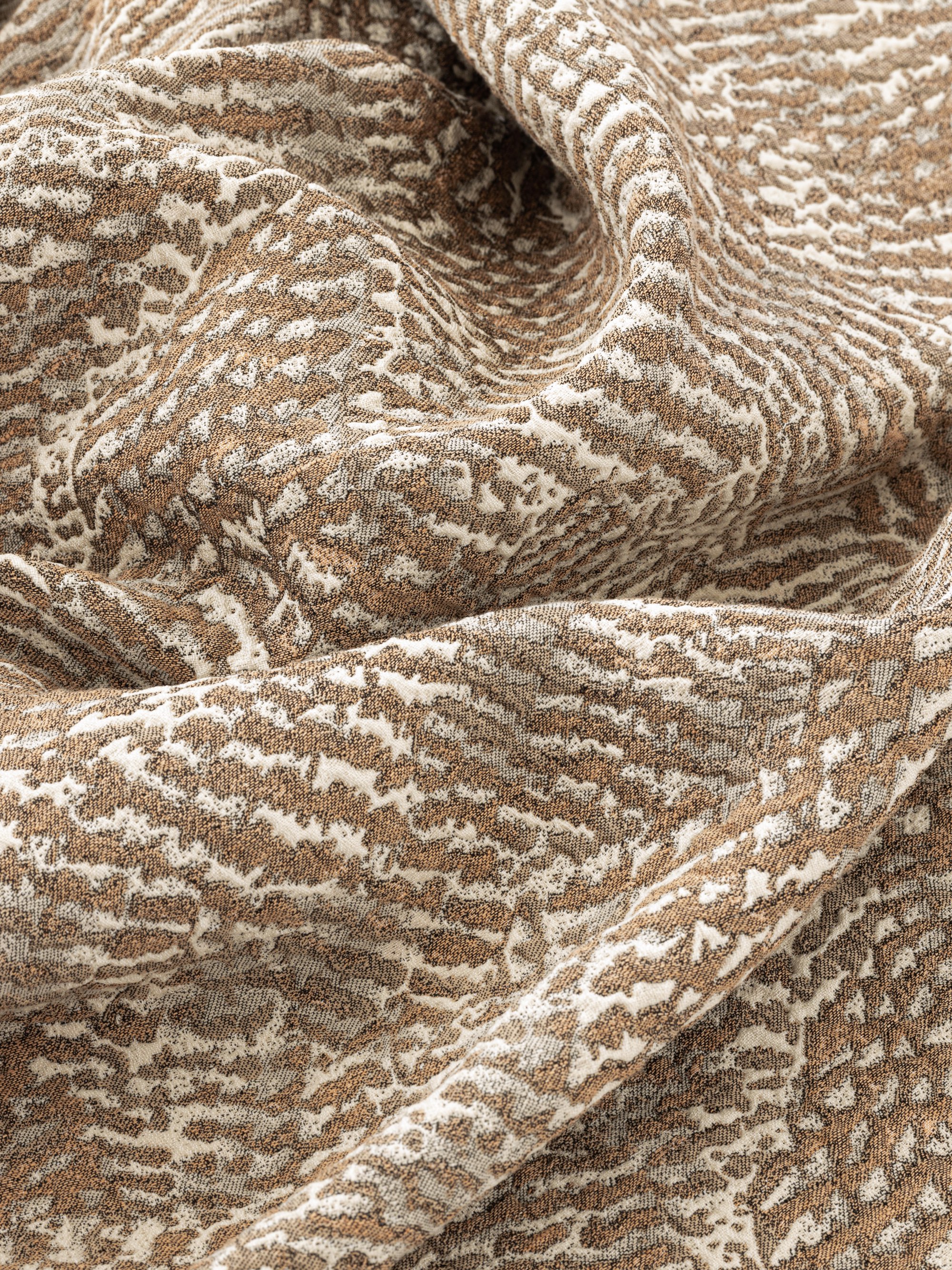 Zaki features a unified jacquard design incorporating geometric shapes with a touch of animal print. Zaki has a wonderful textured quality, a beautiful hand and an effortlessly elegant drape perfect for all window treatments, accessories and occasional upholstery.